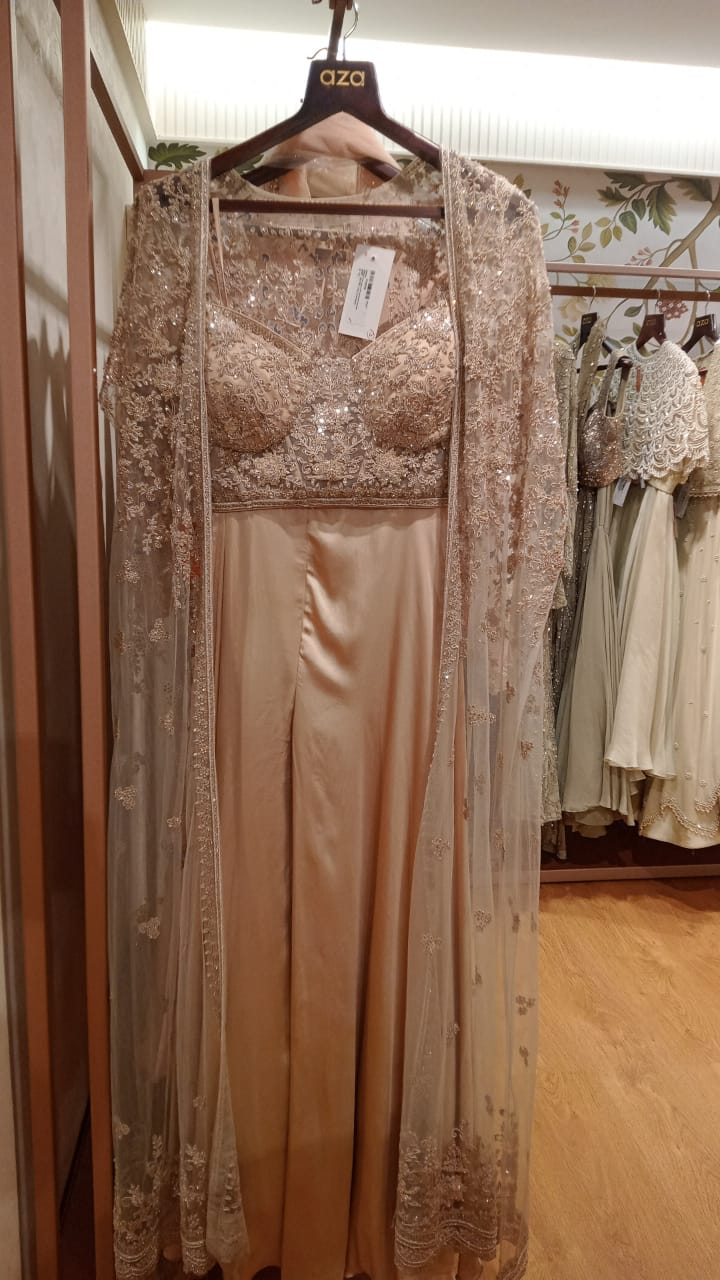 Remark: Client Body Measurements for blouse Shoulder-14.5 Neck deep Front-8 Neck deep back- 11 Upper bust - 33 Round bust - 34.5 Under bust - 30.5 Shoulder to apex - 9 Apex to apex - 7 Armhole- 16.5 Blouse length- 14.5 Client Body Measurements for bottom Bottom Waist- 31.5 Stomach 34 Hips- 41 Upper thigh-25 Crotch - 29 Bottom Length - 40 Client Body Measurements for cape Cape length - 54 PLEASE NOTE CLIENT NEEDS 2 INCHES MARGIN ON EACH SIDE FOR CORSET AND PANTS Client name - CHAHNA POLEPALLE